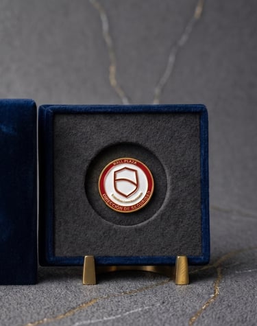 Las challenge coins de Legado Áureo reflejan perfectamente nuestra identidad y compromiso institucional.